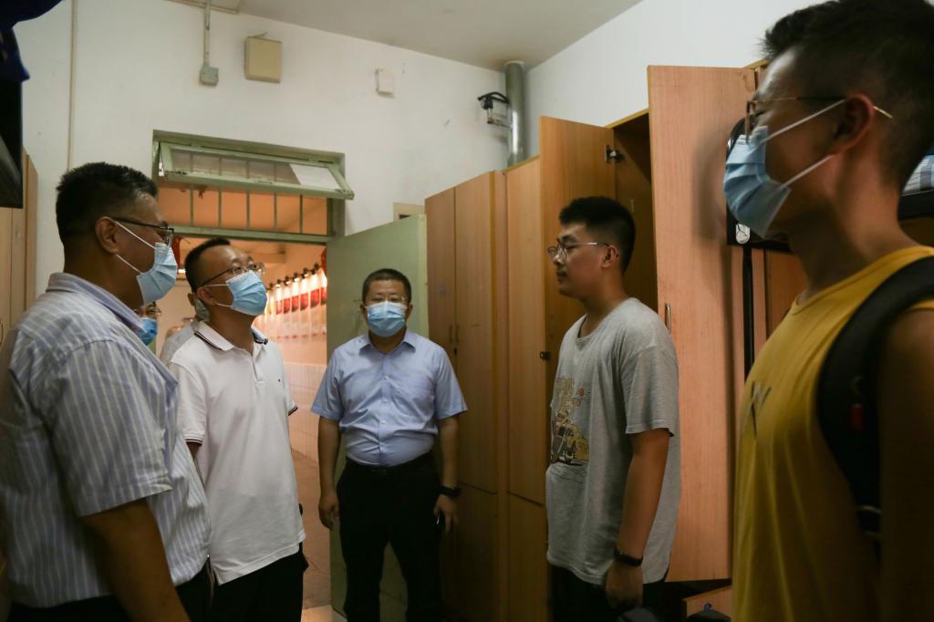 威尼斯欢乐娱人城3328领导班子高度重视学院迎新工作。党委书记李双立、院长张强、党委副书记兼副院长陈猛来到迎新点,助力迎新生工作,并走入宿舍亲切问候学子。他们仔细地查看新生的居住环境,热心地询问新生入学感受,耐心地叮嘱新生疫情防控规定。他们殷切期待,新生们尽快融入学院大家庭中,既保持良好作息又积极参与集体活动,既认真刻苦学习又与师长多交流学习,拥有充实快乐、稳健成长、朝气蓬勃、丰富多彩的大学生活。