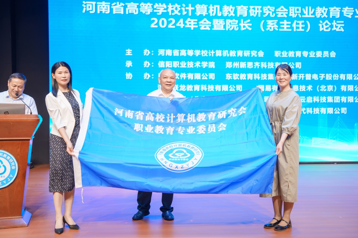 5月16日,河南省高等学校计算机教育研究会职业教育专业委员会2024年会暨院长(系主任)论坛在信阳职业技术学院图书馆报告厅召开,论坛由河南省高等学校计算机教育研究会职业教育专业委员会主办、信阳职业技术学院和郑州新思齐科技有限公司承办。本次年会以 “培育新质生产力,赋能高质量发展”为主题,旨在加强院校之间、校企之间深度交流与合作,深刻认识新质生产力,赋能我省高等职业教育高质量发展。