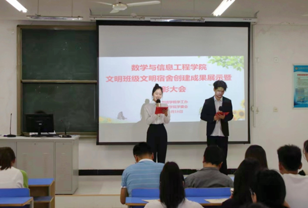 为总结工作成果,增强学生文明意识,营造文明和谐校园,5月16日下午,金年会在计算机实训中心1014多媒体教室召开文明班级文明宿舍创建成果展示暨表彰大会。