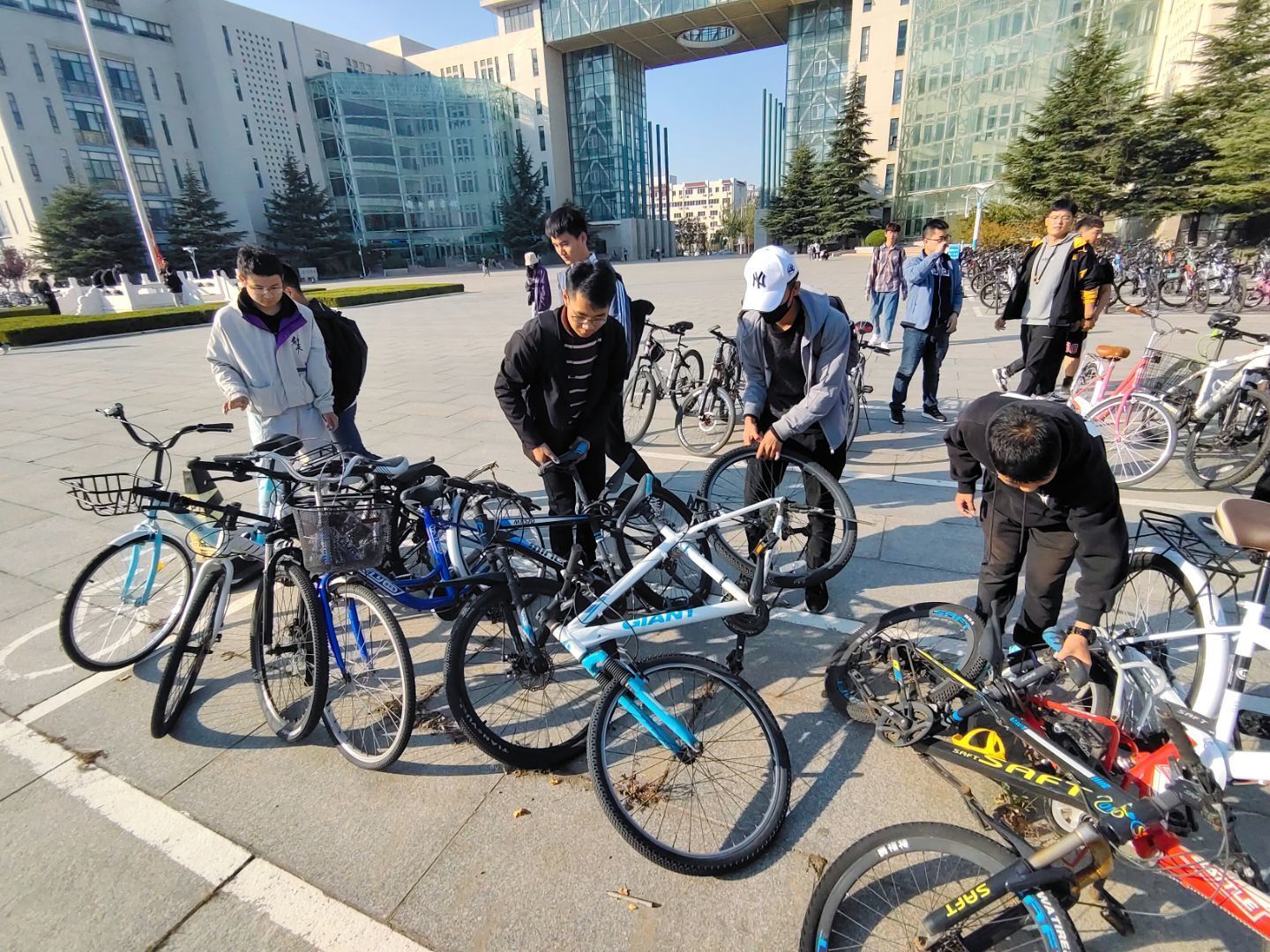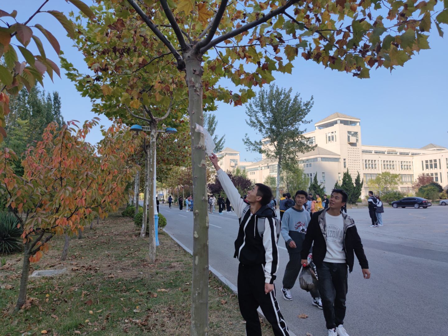 活动开始前,参与志愿服务的同学在院馆大厅集合,领取清扫工具,并进行工作区域划分。本次志愿服务共分成三项内容,即清扫beat365英国官方网站院馆东、北、西3侧的路上及南侧海豚广场的落叶,摆放综合楼南侧、北侧、一二教前、五教前的自行车,捡拾教学南路和临山路两边的草坪的垃圾。他们分工明确,团结协作,相互扶持,展现了良好的协作互助的志愿服务精神。