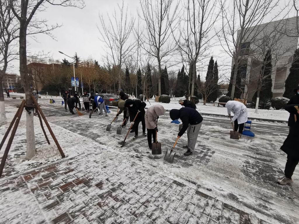 12月28日,烟台莱山区迎来新一轮强降雪。为保障广大师生的出行安全,消除雨雪天气导致的安全隐患,维护校园安全及师生健康,按照学校的统一安排和部署,beat365英国官方网站组织学院学生党员开展扫雪公益活动。