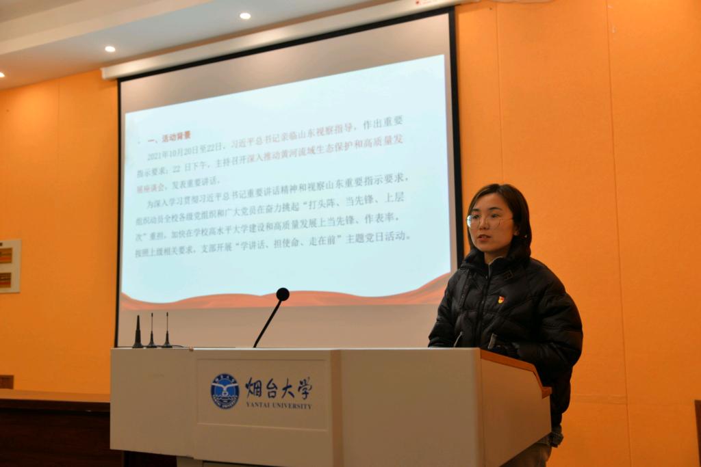 为深入学习贯彻习近平总书记重要讲话精神和视察山东重要指示要求,引领广大党员干部不忘初心、牢记使命,倡树“严真细实快”工作作风,11月30日,beat365英国官方网站第一、二、三党支部大会和研究生党支部分别于学院218室开展了“学讲话、担使命、走在前”主题党日活动。各党支部成员均参与本次党日活动。