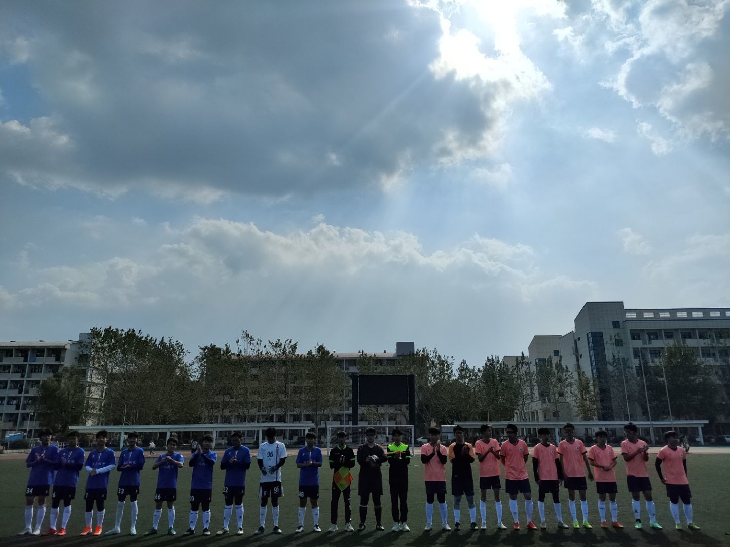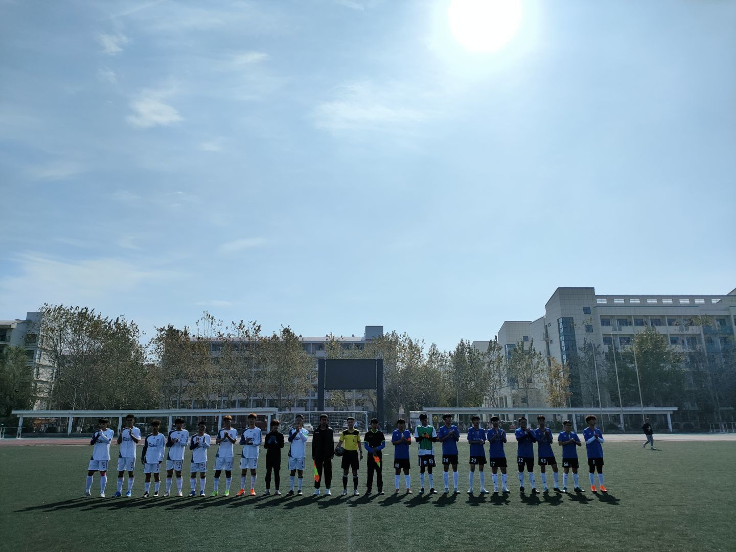 首战,beat365英国官方网站足球队于10月21日对阵土木学院足球队,最终0:4不敌土木学院足球队,遗憾告负。赛后队员们迅速调整状态,认真分析赛情赛状,队员之间相互加油打气,加紧训练,积极准备接下来的比赛。10月25日,beat365英国官方网站足球队对阵光电人文学院联队,以2:1的成绩赢得小组赛第二场比赛,此次胜利极大鼓舞了足球队的士气。10月28日,在小组赛的最后一战中,beat365英国官方网站足球队与核外联队,双方旗鼓相当,最终以0:0平局结束。至此,beat365英国官方网站新生足球赛小组赛结束,beat365英国官方网站足球队凭借过硬的技术与不气馁、不放弃的精神成功进入八强淘汰赛。