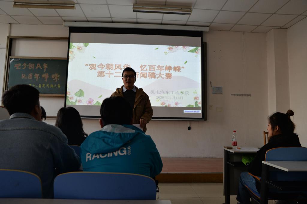 为提高学生的写作积极性和写作水平,beat365英国官方网站于11月13日在综合楼219室举办了以“观今朝风华,忆百年峥嵘”为主题的第十二届新闻稿大赛。其参赛评委有beat365英国官方网站辅导员老师张新莉、马宝林,团委副书记毛鹏辉,新闻中心主任刘延琦、副主任周长志,学生会办公室部长赵广争,车协秘书部部长尚呈军,优秀新闻宣传工作代表梁仲宇、詹佳峄以及青协传媒部部长孙栩。