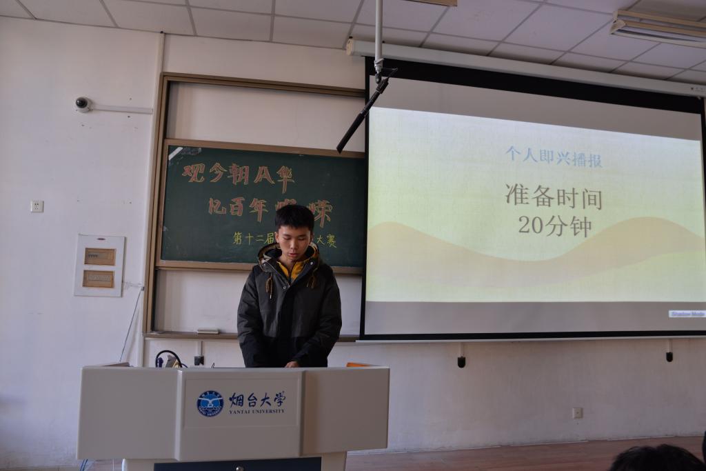 活动开始,由主持人于智博一一讲解了该比赛的流程和每环节的注意事项及打分标准。本次活动共有两个环节。第一个环节是小组分组场景即兴模拟,以抽签的方式来决定各小组的场景,每小组有三十分钟准备时间,期间有任何问题可以联系工作人员。第三组成员首先登场对新生开学典礼进行模拟,他们配合默契并自信上场赢得了评委们和参赛人员的热烈掌声。接下来各小组依次按照顺序登场,其中第四小组主题是新生辩论赛,现场双方辩友旗鼓相当,场面十分激烈,在第四回合个人辩论环节,双方选手将辩题进一步升华,引起场下观众巨大兴趣。第二环节是即兴播报,经过二十分钟的准备时间,现场表现出了绝妙的效果。最后,评委们、参赛人员以及工作人员拍照留念。至此,本次“观今朝风华,忆百年峥嵘”第十二届新闻稿大赛圆满结束。