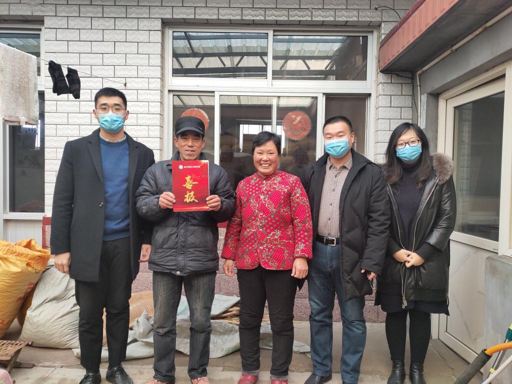 为表彰、勉励优秀学子,发挥获奖学生引领示范作用,加强学校与学生家庭及优质生源中学的联系,形成育人合力,12月10日至11日,beat365英国官方网站组织开展“走访送喜报,温情暖人心”活动。beat365英国官方网站辅导员王荣优、王才、张新莉、李晓萍赴潍坊诸城市,为部分奖学金获得者家长及毕业中学送喜报。