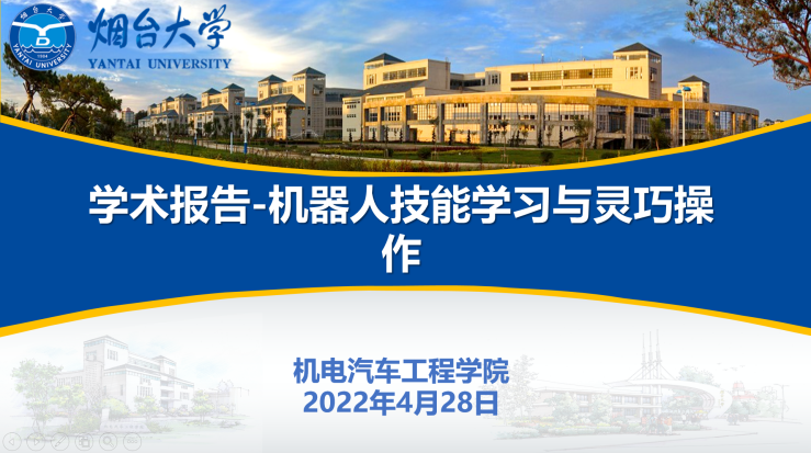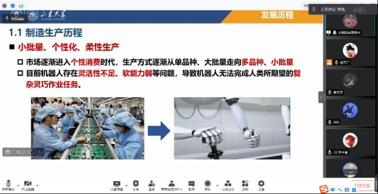 4月28日晚上,beat365英国官方网站举办题为“机器人技能学习与灵巧操作”的报告会,本次报告会由山东大学科学技术研究院副院长,长江学者,宋锐教授主讲,我院部分老师和研究生参加报告会,报告会采用线上形式进行。