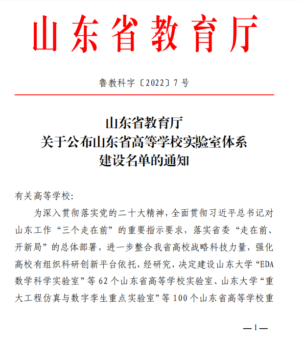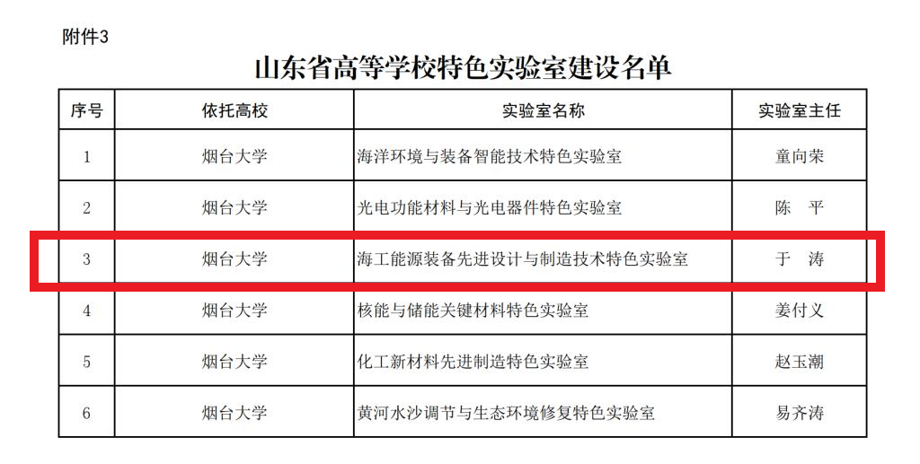近日,山东省教育厅发布了《关于公布山东省高等学校实验室体系建设名单的通知》,我院申报的“海工能源装备先进设计与制造技术特色实验”进入山东省高等学校特色实验室建设名单。