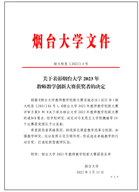 图1 教师教学创新大赛获奖通知
