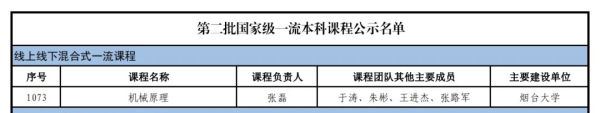 《机械原理》被认定为为国家级线上线下混合式一流本科课程