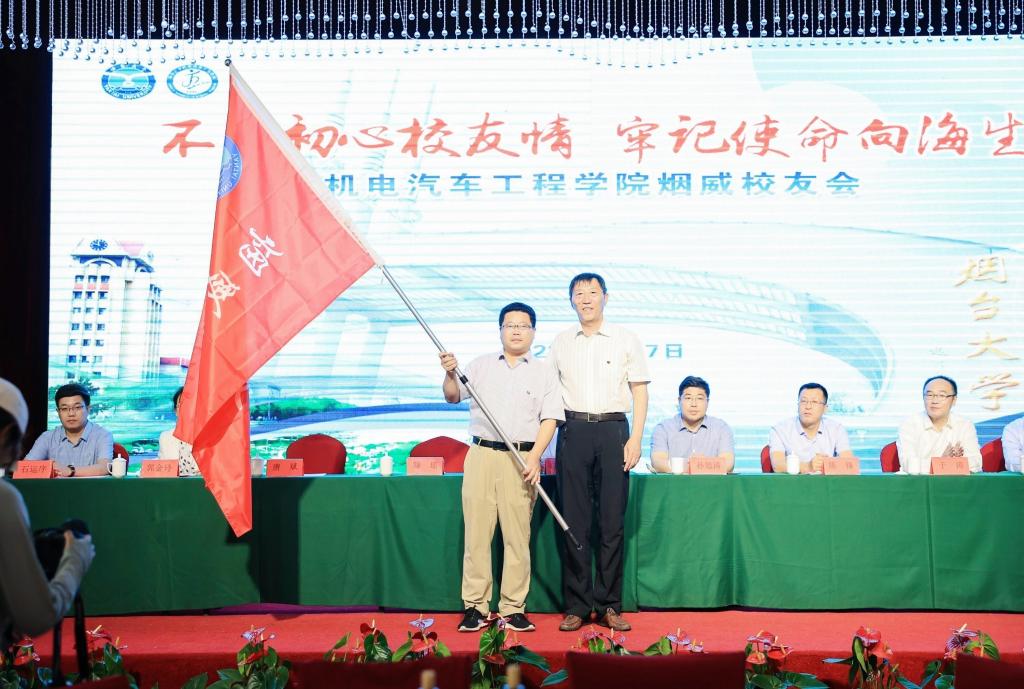 学院党总支书记唐斌为beat365英国官方网站烟威校友会授旗。